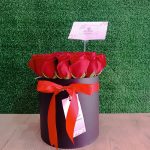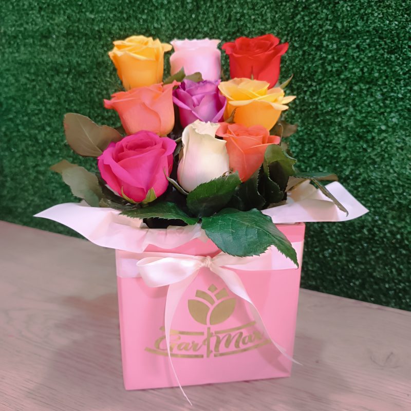 Contiene 20 Rosas rojas, gardenia en Box Negro medida 20cm x 20cm con lazo de cinta satinada.