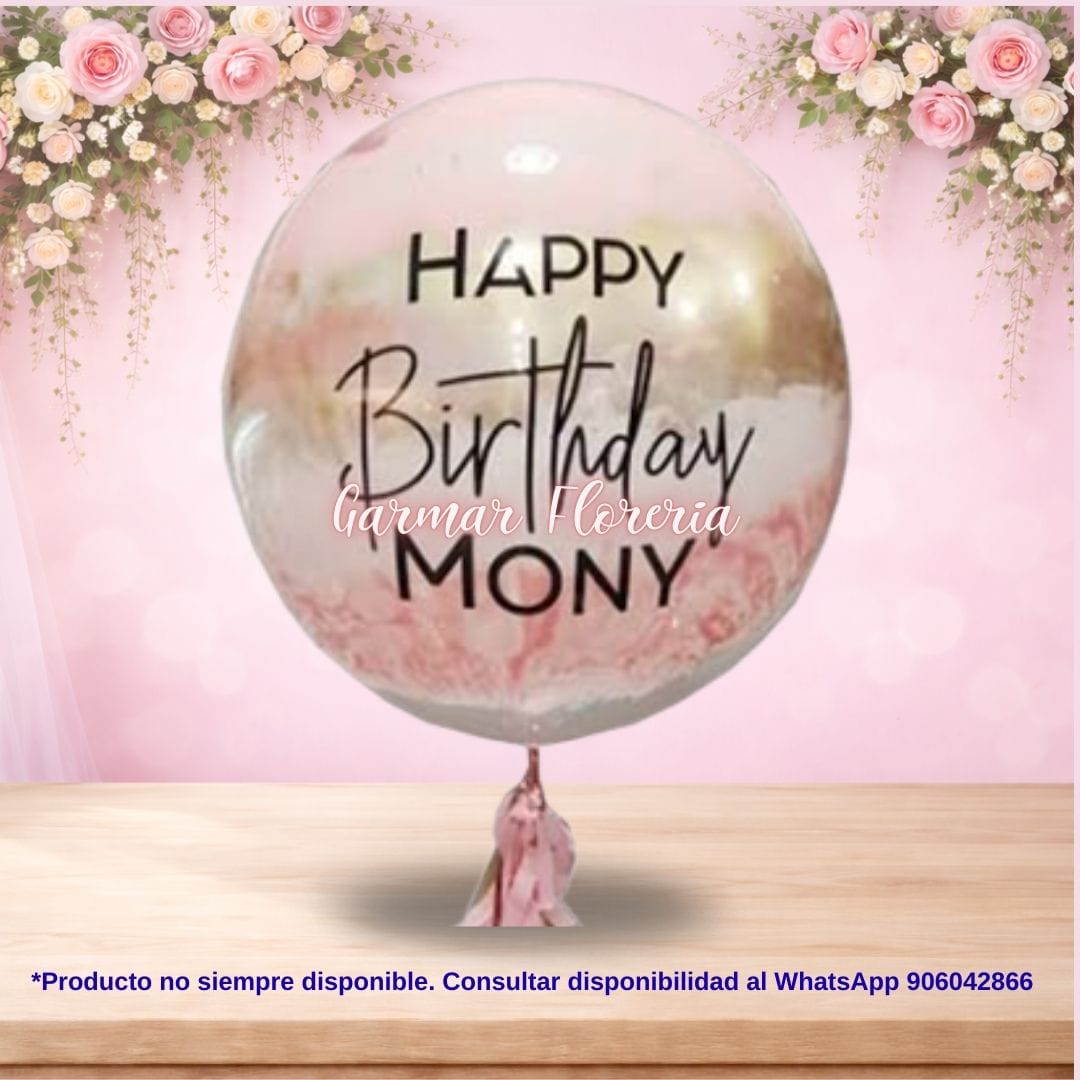 Contiene Globo transparente con pintura acrílica personalizado. Con frase personalizada y lazo de cinta satinada.